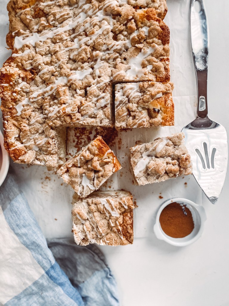 My favorite breakfast dessert growing up was always new york style crumb cake. I used to LOVE getting it at bakeries up North. I added an apple layer to the crumb cake and it was the perfect duo.