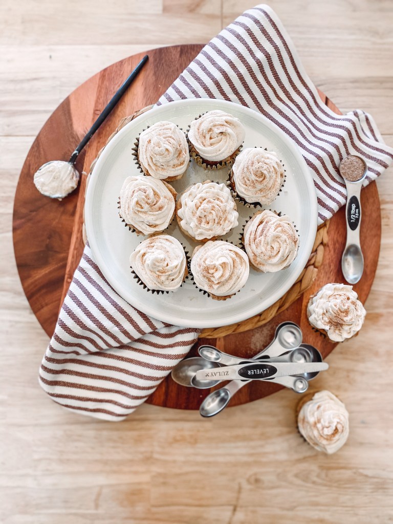 - Ice your cupcakes once they are cooled. Top with cinnamon sugar!