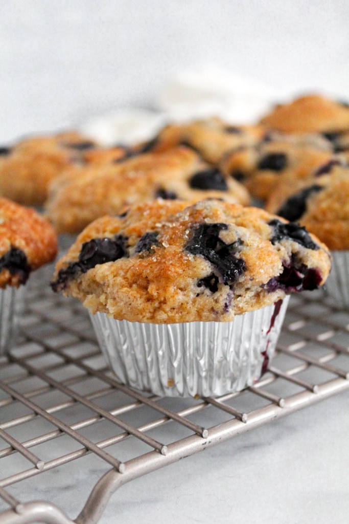 - Top muffins with extra blueberries and turbinado sugar (optional but highly recommended!)